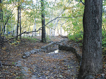 Au cours de l’automne 2010, le barrage du lac Hertel a été réaménagé pour répondre aux nouvelles normes de la Loi sur les barrages et de leur sécurité et pour redonner l’accès au ruisseau à la faune. La construction du nouveau barrage et de son déversoir a nécessité l’intervention de machinerie lourde dans une zone boisée très sensible et elle a fait descendre le niveau du lac de 60 cm. Douze seuils de moins de 30 cm de hauteur ont été nécessaires pour aménager la sortie du barrage et ainsi permettre l’accès à la faune au reste du ruisseau. Sur les berges, plus de 850 arbres, arbustes et fougères ont été plantés avec l’aide d’une centaine de bénévoles. Afin de préserver la richesse exceptionnelle du site, toutes les plantes utilisées sont indigènes à la région. Sauf pour le barrage de béton, le milieu conserve ainsi ses fonctions et son aspect naturel.