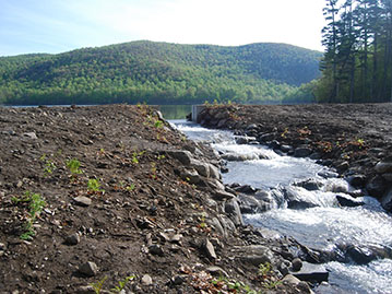 Suite à la réfection du barrage du lac Hertel, l’aménagement de seuils propices au passage de la faune sur le ruisseau des Moulins a permis l’utilisation d’habitats en aval du lac par plusieurs espèces de poissons dès le printemps suivant.