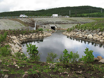 Lors des travaux routiers, certains cours d’eau ont subi des perturbations. Ils ont donc été restaurés en considérant l’habitat du poisson, notamment pour favoriser l’omble de fontaine (seuils, méandres, aménagement de berges). Il s’agit d’un projet considéré comme un chantier « école » important au Québec qui présente beaucoup de structures facilitantes pour le passage de la faune. Une étude en cours avec l’Université Concordia assure un suivi de son utilisation par la faune sur une durée de quatre ans. Jusqu’à maintenant, 24 espèces de mammifères et une dizaine d’espèces d’oiseau ont été observées et des milliers de passages ont été enregistrés.