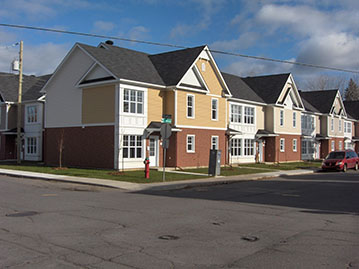 La construction de trois immeubles de 20 unités de logements a été prévue précisément pour les familles à faible revenu de trois enfants ou plus. Les immeubles ont été construits au centre-ville pour permettre un accès facile aux services par la voie piétonne. Afin de s’harmoniser avec la trame urbaine du Vieux-Sorel, le développement a été prévu sous forme de maisonnettes en rangée. L’ancien stationnement de l’église a été choisi comme site, ce qui a permis de revaloriser un espace gris, plutôt que de détruire un espace vert. De plus, l’espace a été maximisé afin d’offrir de grandes cours arrière avec plus d’espace de verdure. D'ailleurs, tous ces choix ont été faits en concertation avec les futurs locataires, afin que leurs préoccupations soient entendues.